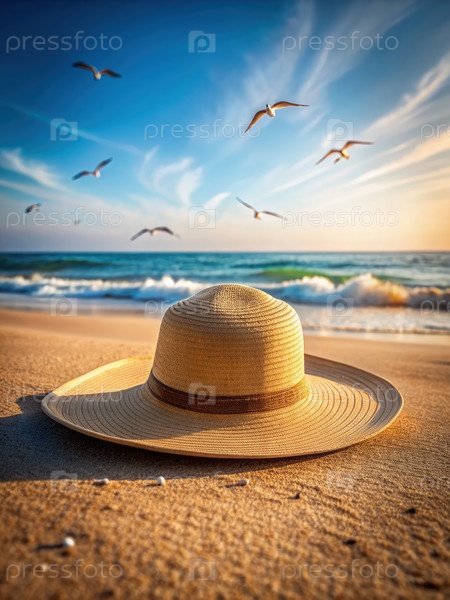 Шляпа отдыхает на Сэнди Бич. Генерирующий ИИ