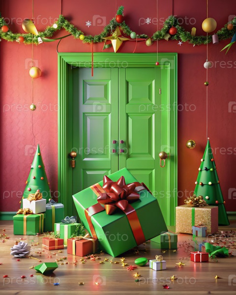 Зачарованная зеленая дверь: Рождественская феерия. Генерирующий ИИ