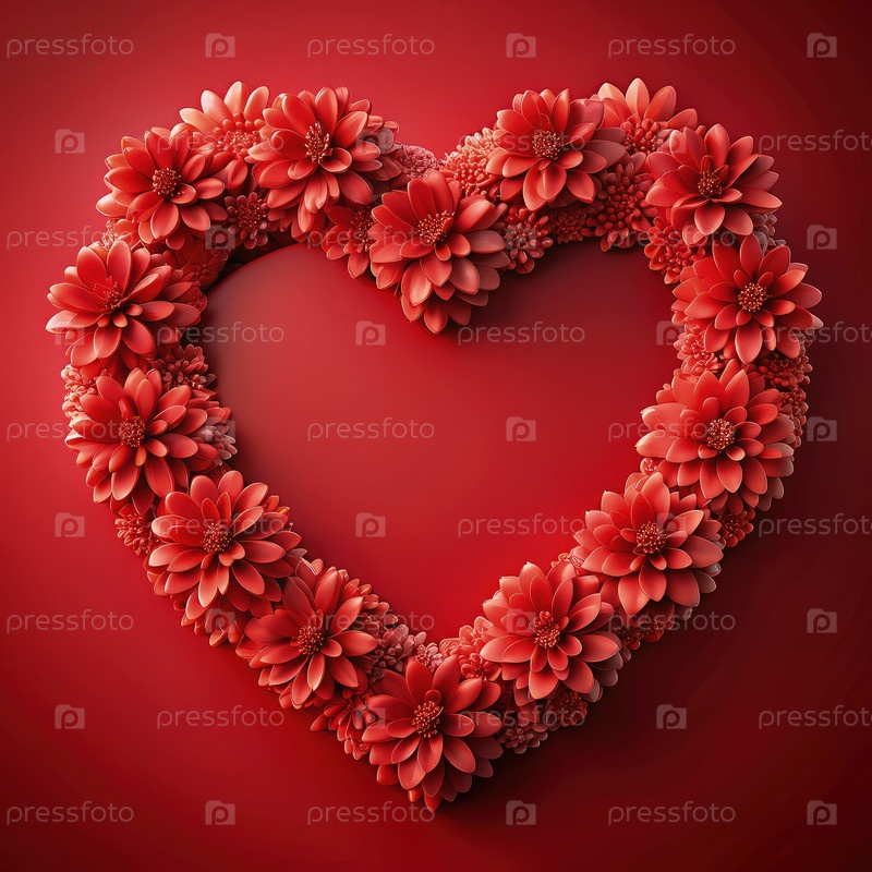 Цветущее сердце: цветочный шедевр на багряном холсте. Генерирующий ИИ