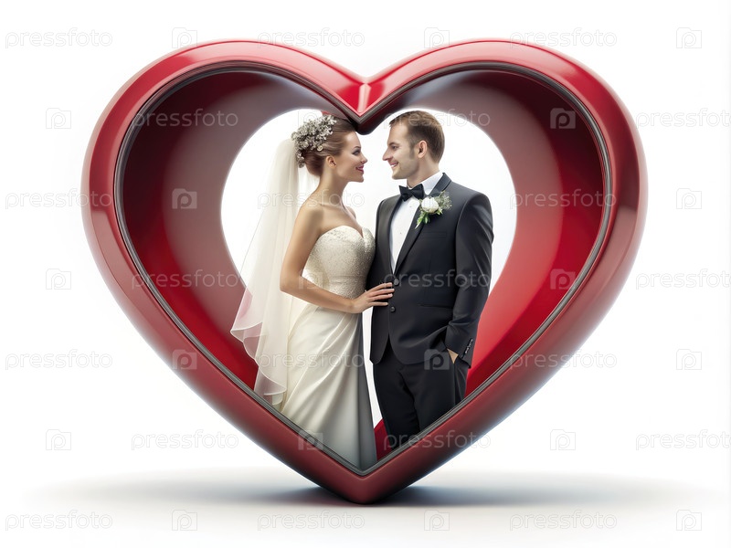 Вечная любовь: жених и невеста, обнявшиеся в каркасе сердца. Генерирующий ИИ