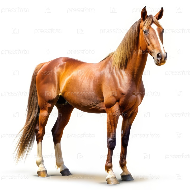Величественный коричневый конь изящно наступает на белый холст. Генерирующий ИИ