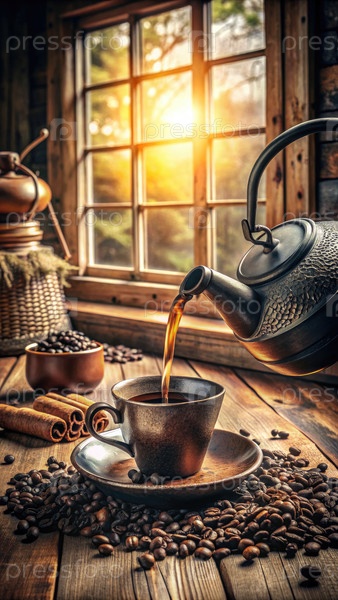 Вливание кофе в чашку на очаровательной кухне. Генерирующий ИИ