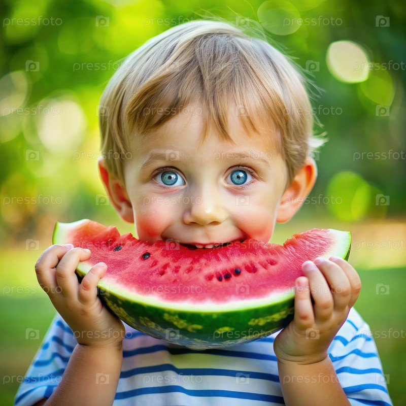 Маленький мальчик съел кусок арбуза Генерирующий ИИ
