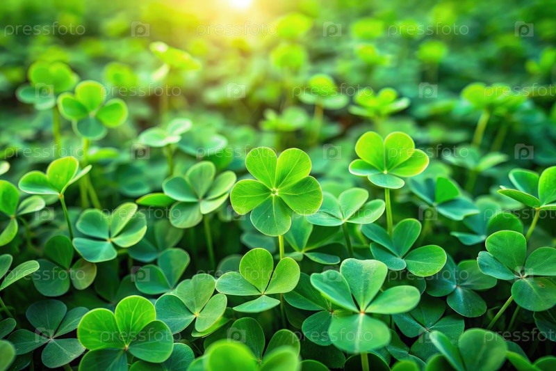 Солнечное Зеленое Поле Кловера. Генерирующий ИИ