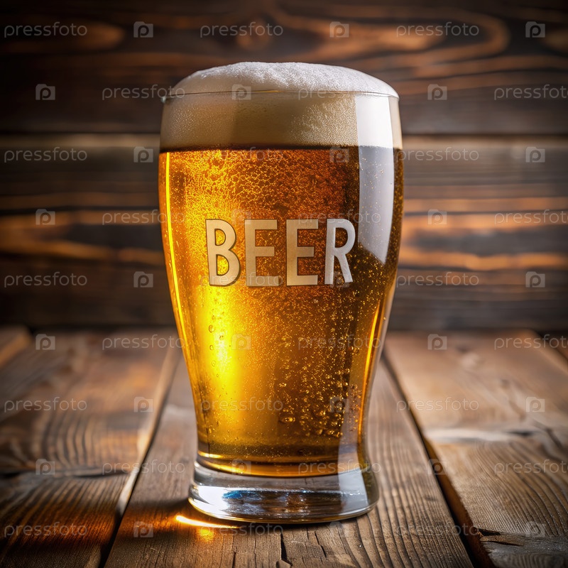 Стакан пива на деревянном столе. Генерирующий ИИ