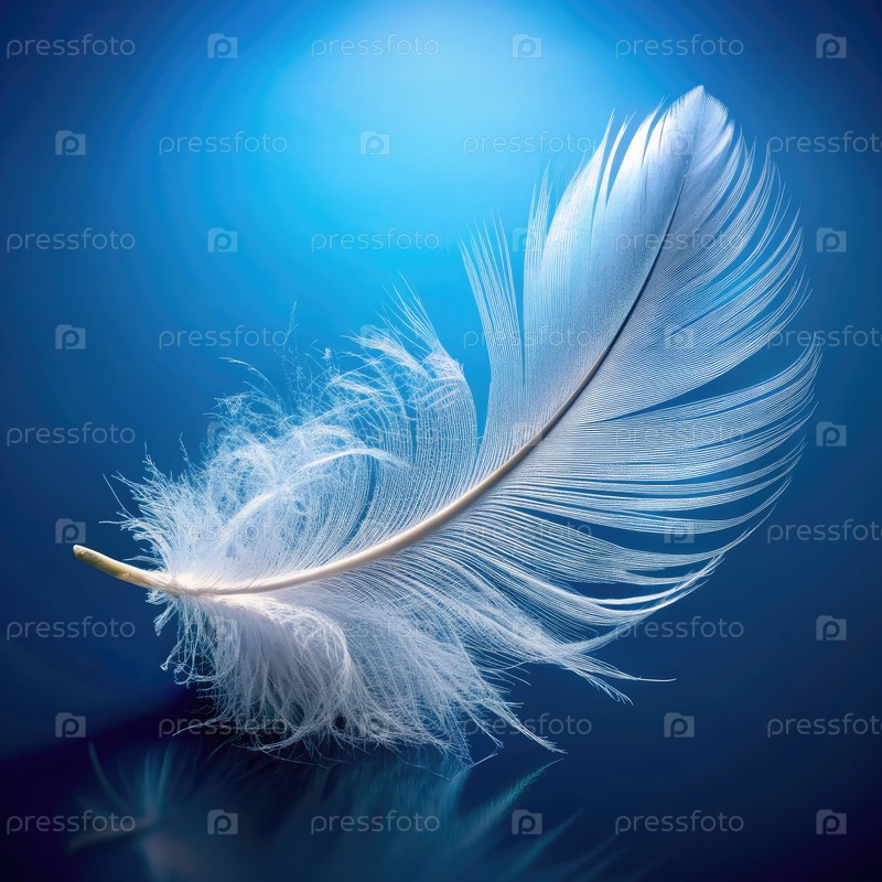Белое перо на синем фоне. Генерирующий ИИ