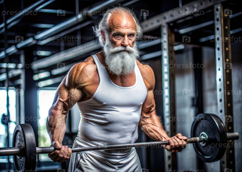 Пожилой мужчина с длинной белой бородой, держащей Барбелл Генерирующий ИИ