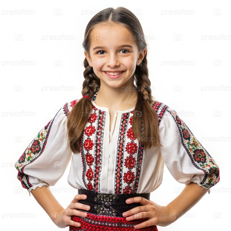 Девушка в красно-белом национальном платье. Генерирующий ИИ