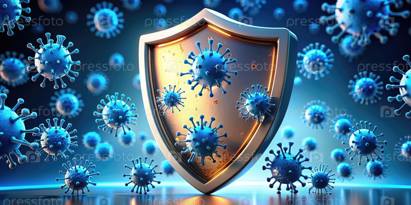 Щит окружен синей и желтой коронами. Генерирующий ИИ