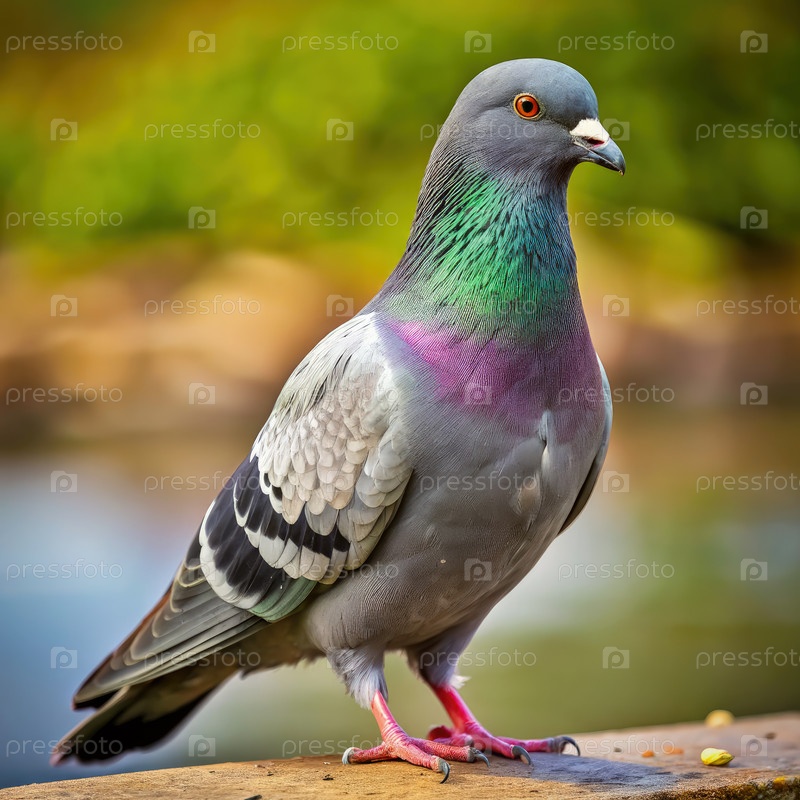 Голубь, стоящий на лезвии у воды. Генерирующий ИИ