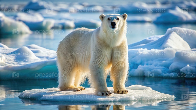Полярный медведь на ледяной подушке. Генерирующий ИИ