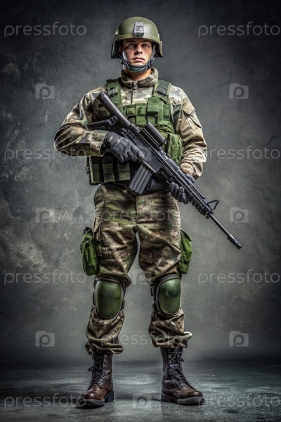 Солдат держит винтовку. Генерирующий ИИ