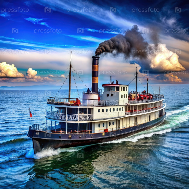 Большой пароход, испускающий дым. Генерирующий ИИ