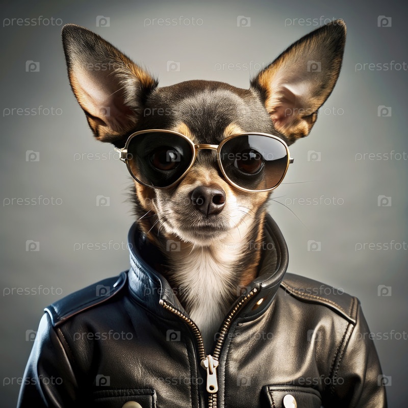 Собака в солнечных очках и кожаной куртке. Генерирующий ИИ