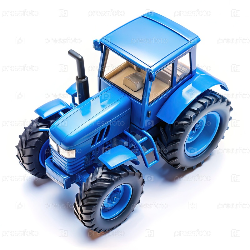 Синий игрушечный трактор на белом фоне. Генерирующий ИИ