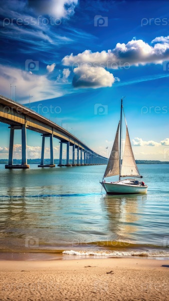 Парусник, плавающий под мостом. Генерирующий ИИ