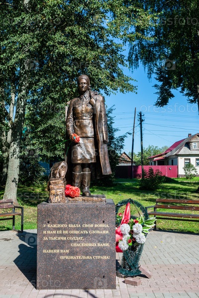 Россия, Тверская область, Осташков - 25.08.2024.Памятник медицинской сестре полевых и тыловых госпиталей.Памятник медсестрам Великой Отечественной войны.Памятник ВОВ.Обелиск.Монумент.Памятник.Бронзовая скульптура.Осташков,Тверская область,Россия - 0
