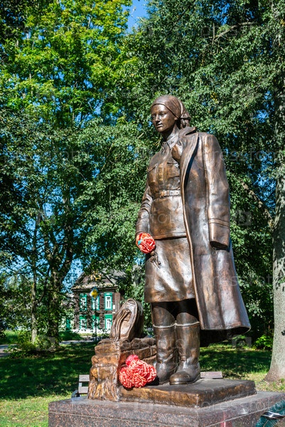 Россия, Тверская область, Осташков - 25.08.2024.Памятник медицинской сестре полевых и тыловых госпиталей.Памятник медсестрам Великой Отечественной войны.Памятник ВОВ.Обелиск.Монумент.Памятник.Бронзовая скульптура.Осташков,Тверская область,Россия - 0