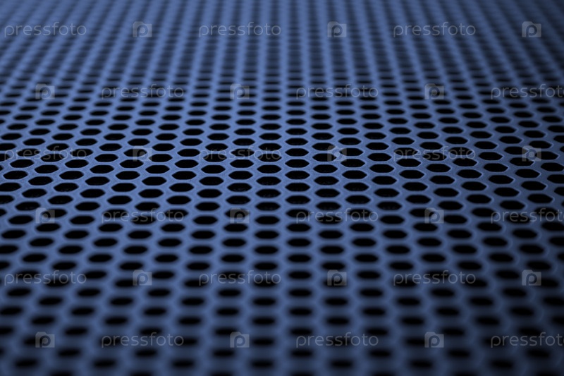 Промышленный фон. Глубокая синяя металлическая поверхность с регулярными круглыми отверстиями