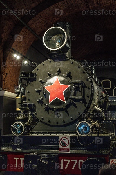 Советский локомотив у платформы крупным планом с поездом под посадку