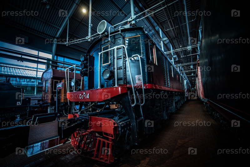Советский локомотив у платформы крупным планом с поездом под посадку