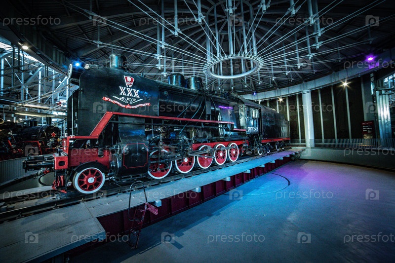 Советский локомотив у платформы крупным планом с поездом под посадку