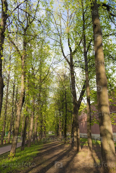 Аллнея и тропинка у стен Донсокго монастыря в Москве