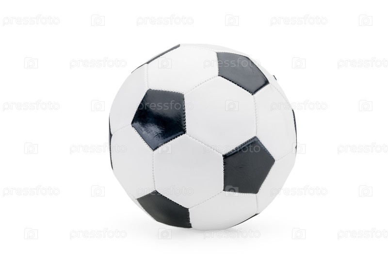 Спортивное оборудование и концепция досуга с черно-белым классическим кожаным футболом или футбольным мячом, изолированным на белом фоне