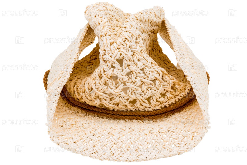 Классическая ковбойская плетеная соломенная шляпа изолирована на белом фоне