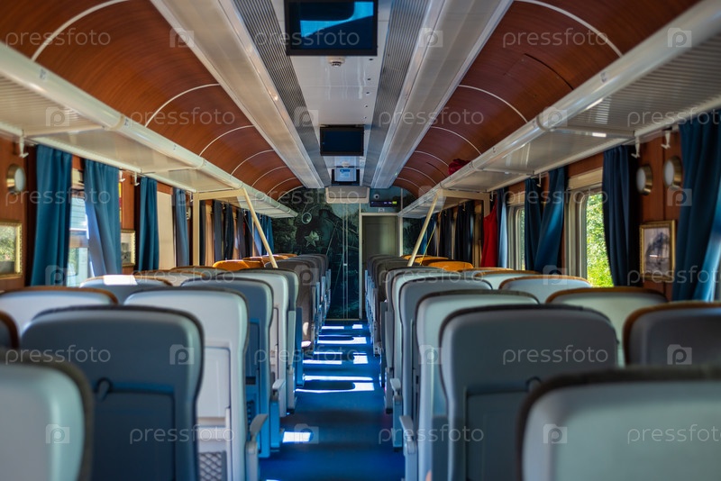 Осташков Тверская область Россия-25.08.2024. Интерьер вагона РЕТРОПОЕЗДА «СЕЛИГЕР» в историческом стиле