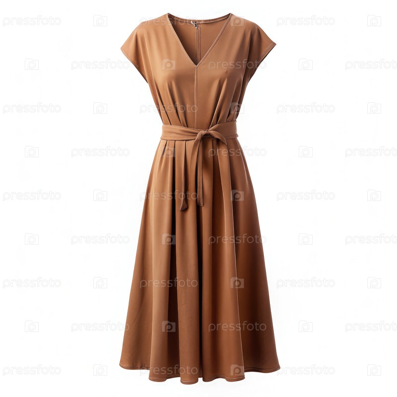 Загадочный Элегантность: женщина в коричневом платье с поясом. Генерирующий ИИ