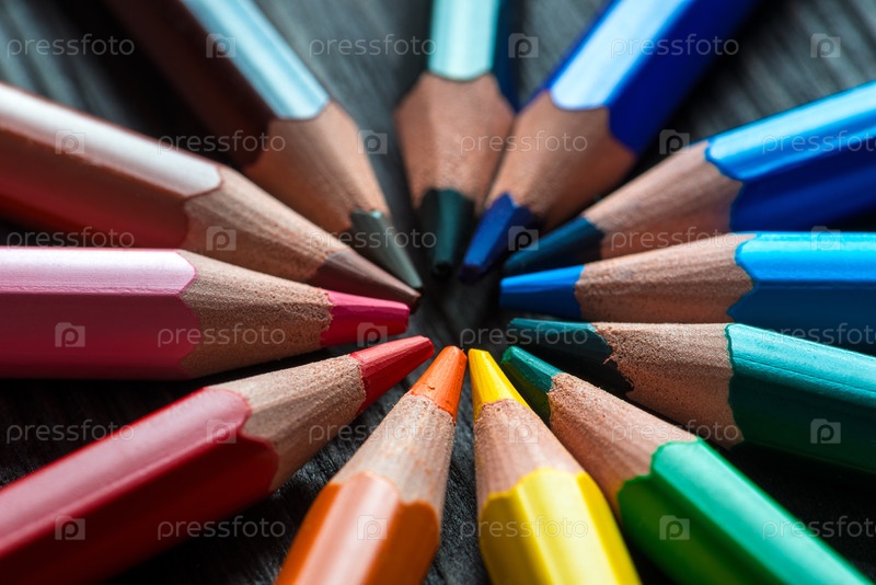 Многоцветная палитра карандашей по кругу, крупным планом