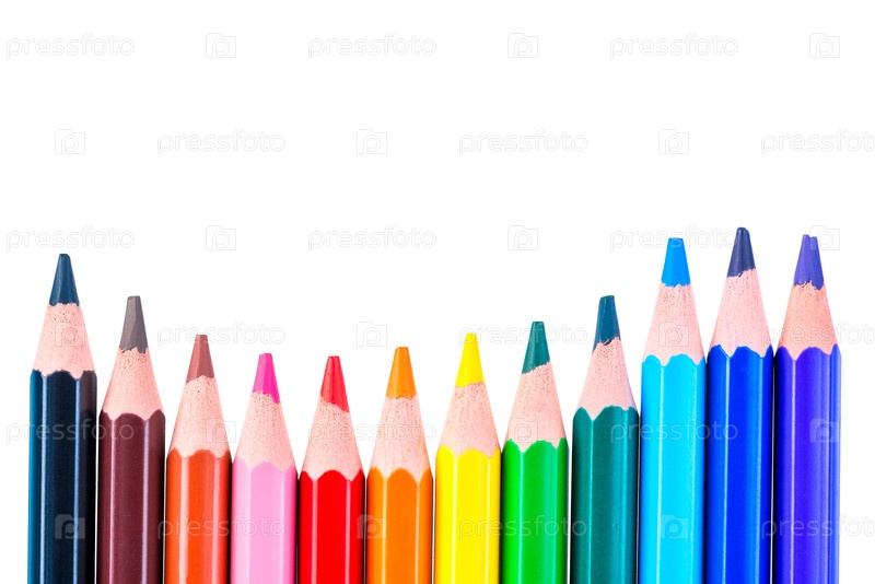 Концепт цветовой волны, ряд цветных карандашей на белом фоне изолирован