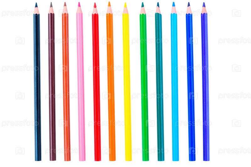Набор из 12 цветных карандашей изолирован на белом фоне