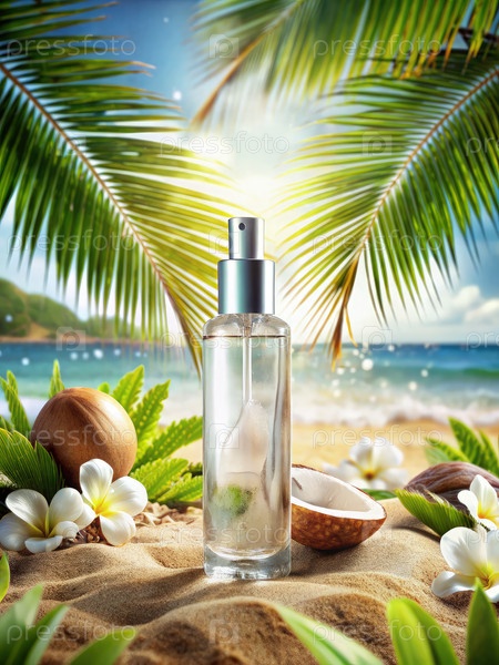 Парфюмерная бутылка на Сэнди-Бич. Генерирующий ИИ