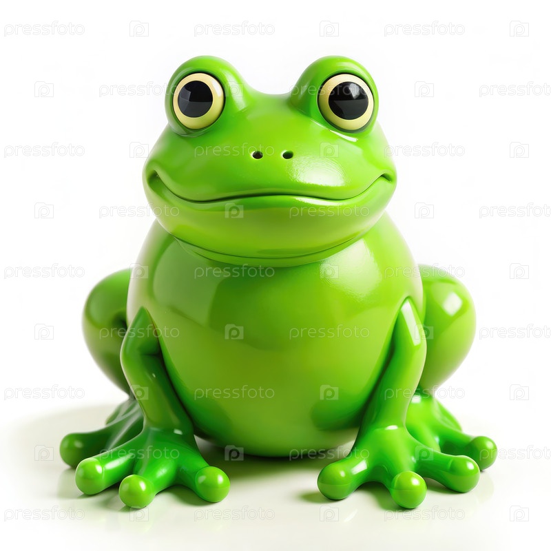 Зеленая лягушка сидит на белом полу. Генерирующий ИИ