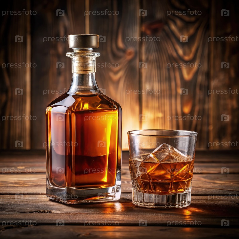 Бутылка виски и стакан льда. Генеративный ИИ