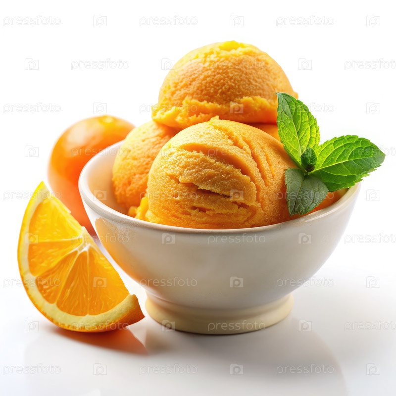 Три ложки апельсинового мороженого в белой чаше. Генерирующий ИИ