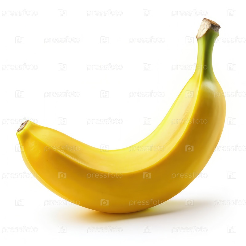 Желтый банан покоится на белой поверхности. Генерирующий ИИ