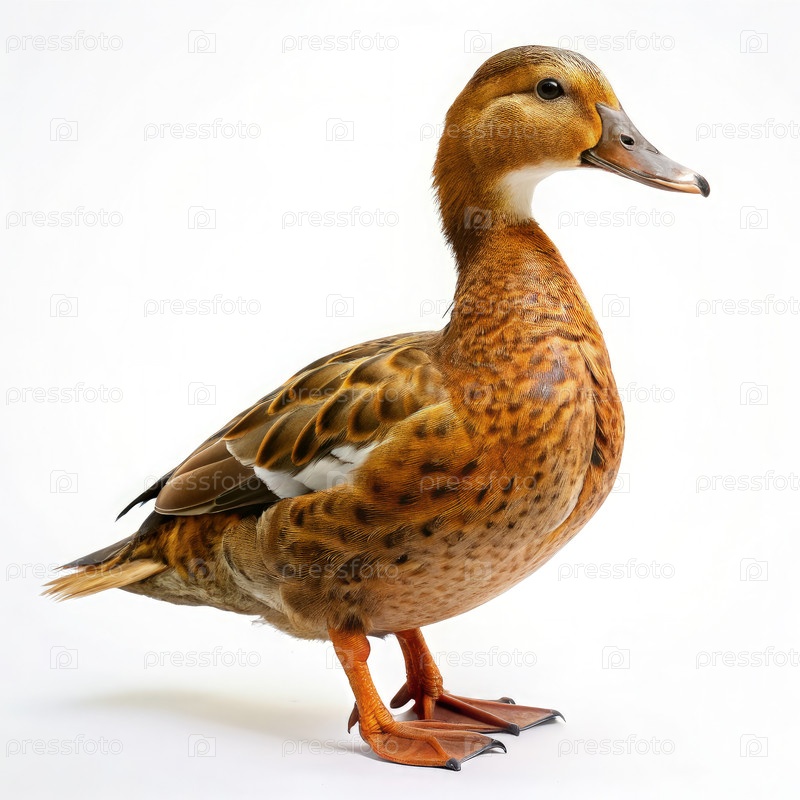 Коричневая утка стоит на вершине белого пола. Генерирующий ИИ