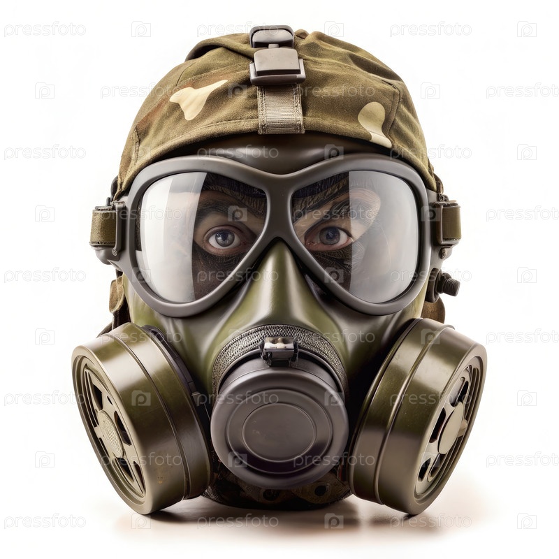 Человек, одетый в газовую маску и очки британской армии GSR