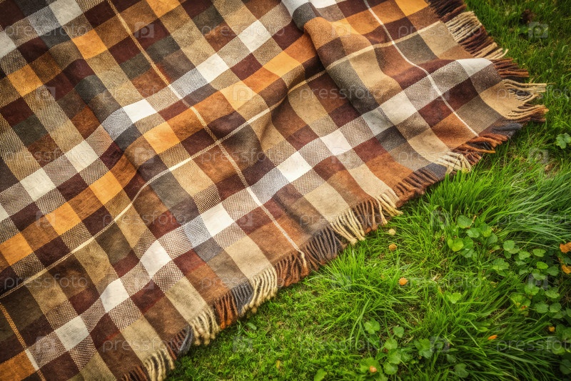 Одеяло Браун Плэйд на Пышном Зеленом Поле. Генерирующий ИИ