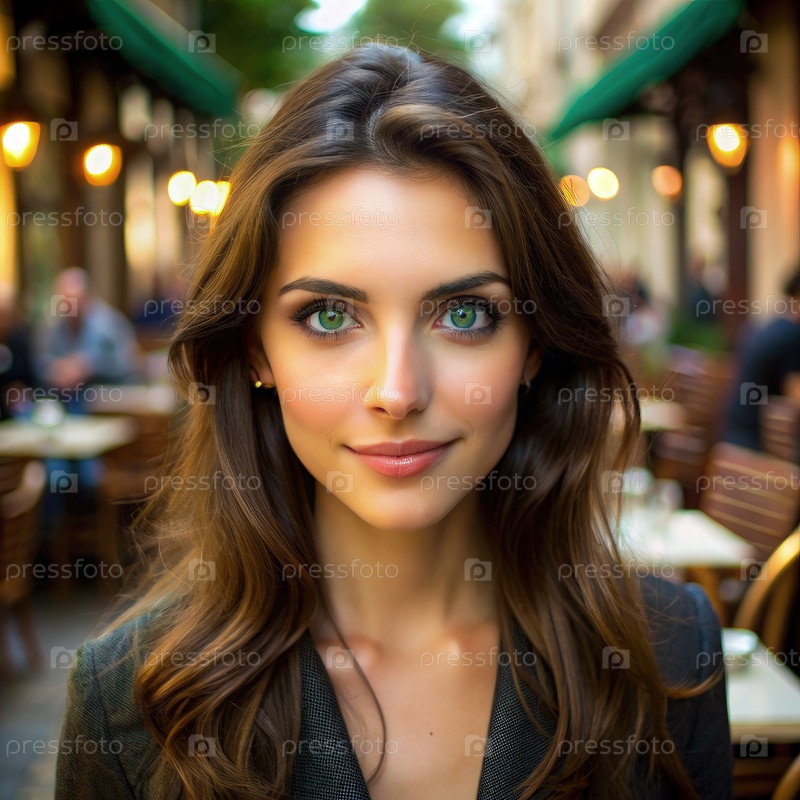 Женщина с длинными волосами и зелеными глазами. Генерирующий ИИ