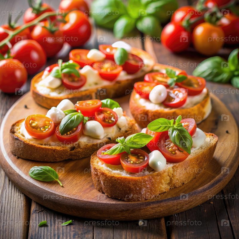 Деревянная плита с сыром и томатной брусеттой. Генерирующий ИИ