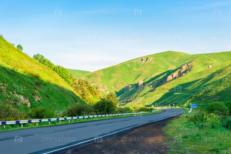 Дорога в живописных зеленых горах Кавказа, Армения