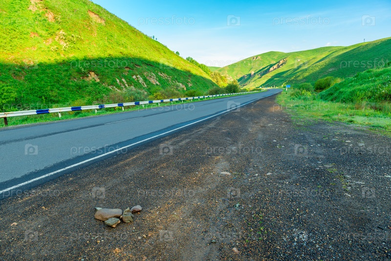 Пустая магистраль в живописных зеленых горах Кавказа, Армения