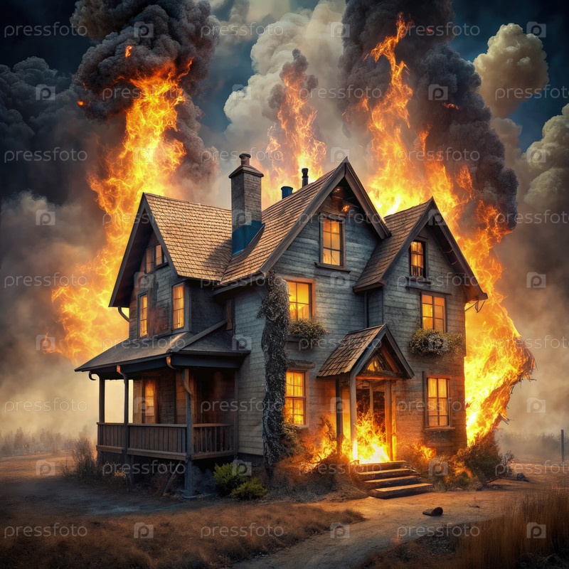 Дом, покрытый пламенем и дымом. Генерирующий ИИ