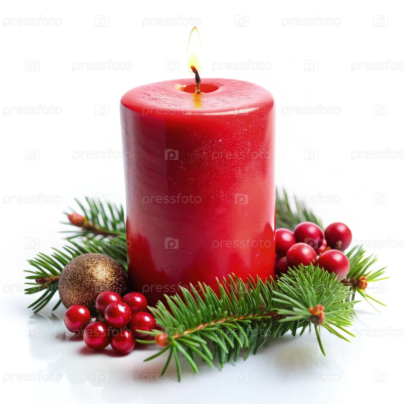 Красная свеча Окруженный рождественскими украшениями. Генерирующий ИИ