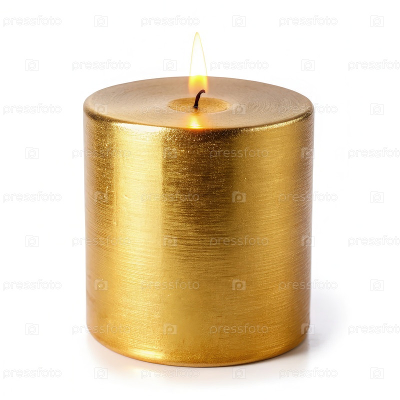 Золотая свеча на белом фоне. Генерирующий ИИ