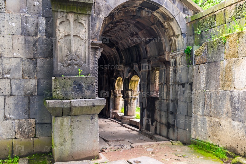 Коридор и древний традиционный хачкар Армении, монастырь Санаин